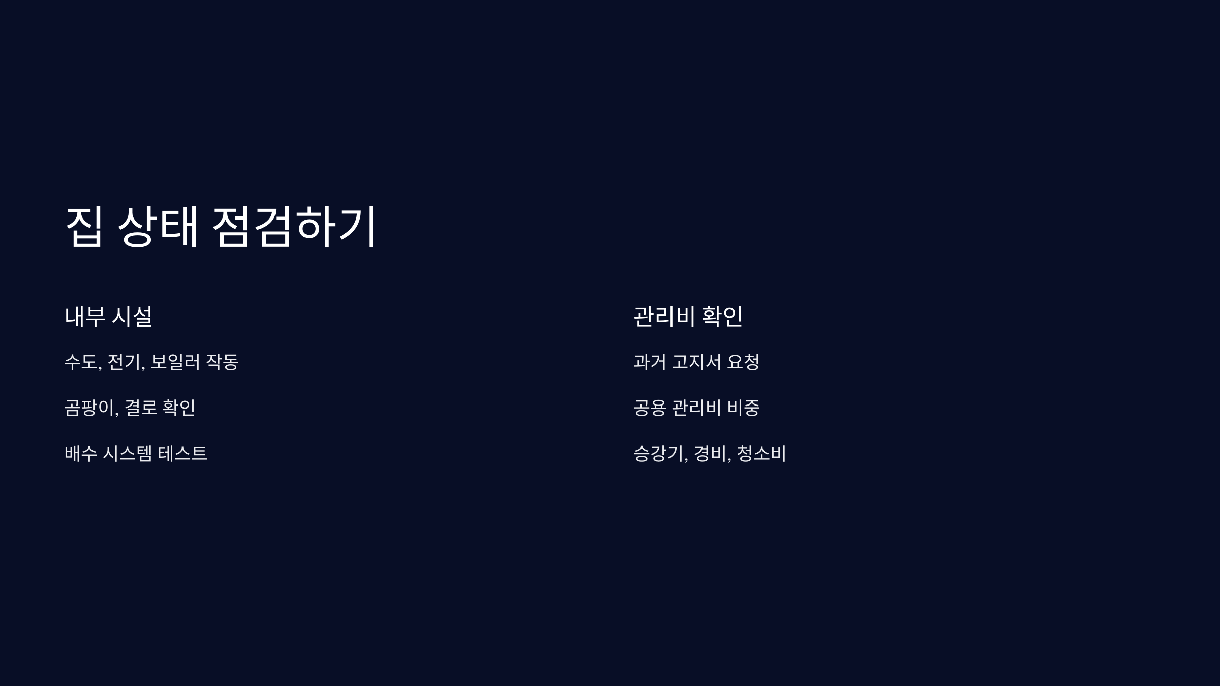 집 상태와 관리비 체크