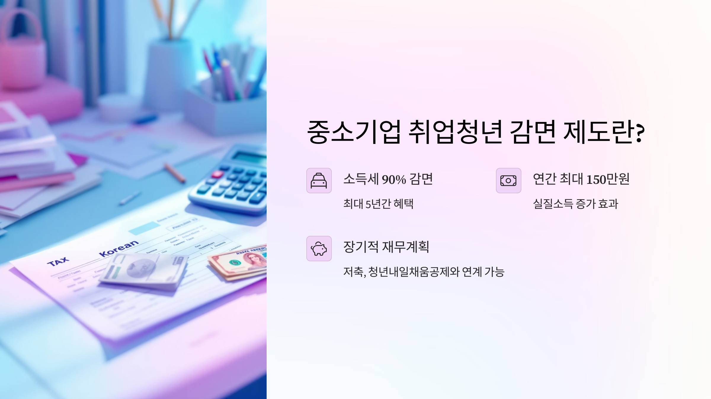 월급도 받고 세금도 깎아주는 '중소기업 취업청년 감면 제도' 지금 확인해보세요.