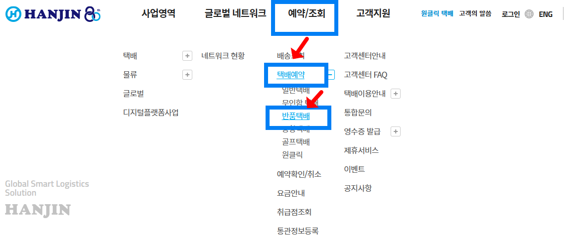 한진택배 공식 홈페이지에서 반품예약을 하는 방법은 아주 간단합니다. 메인 화면에서 '반품예약' 메뉴를 클릭하면 돼요.