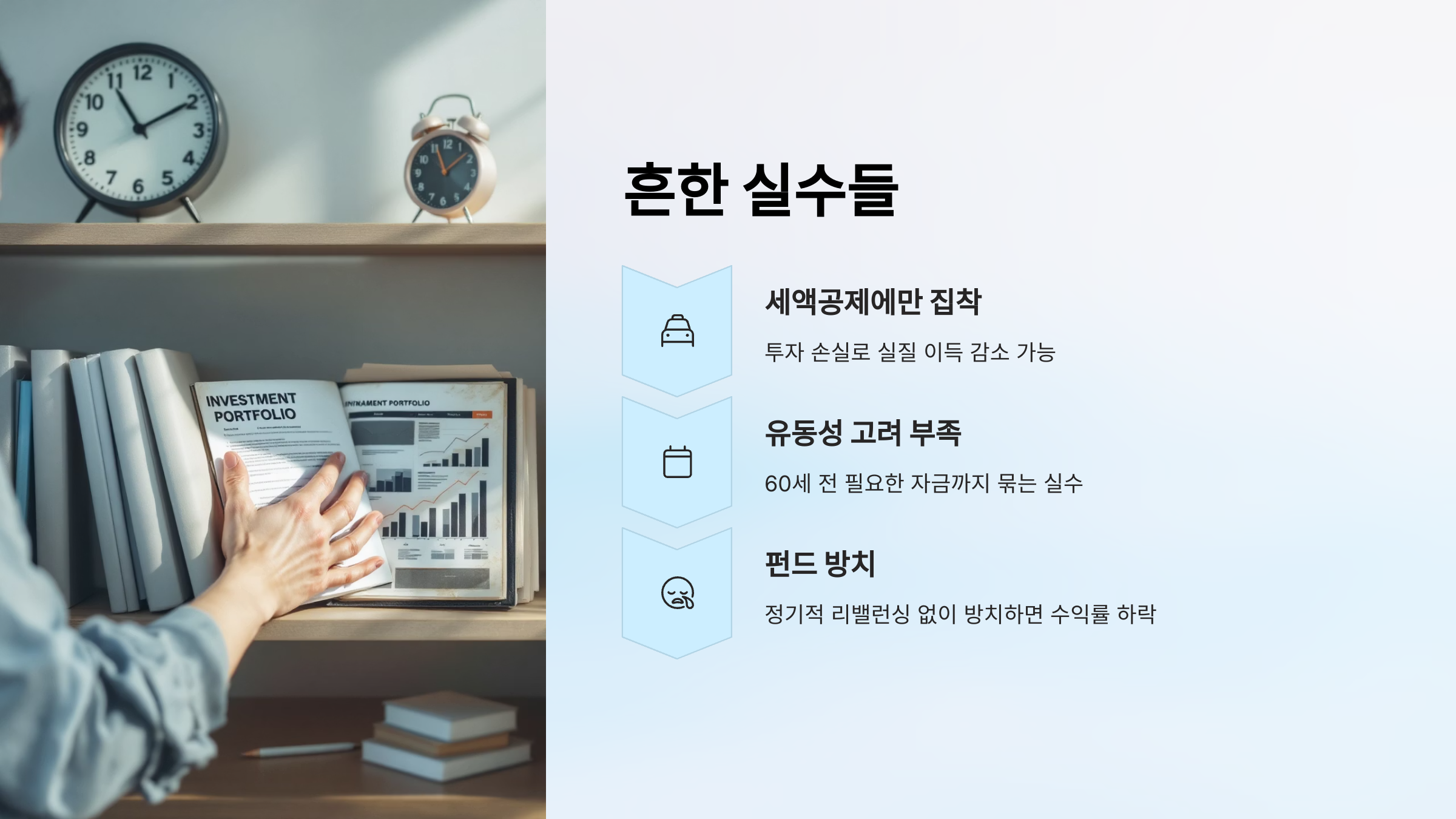 ‘절세 된다니까 일단 가입하자!’라는 태도는 연금저축펀드에서 가장 흔한 실수예요.