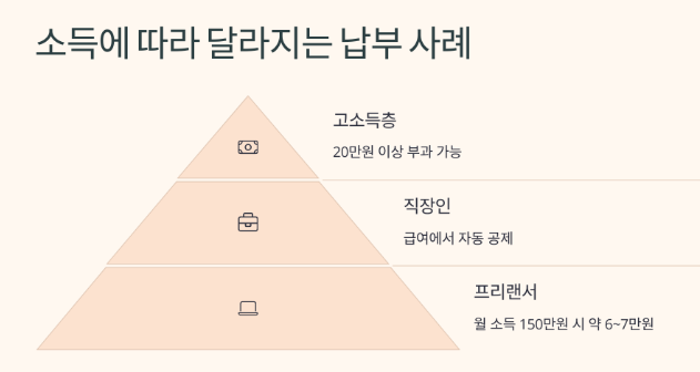 예를 들어 월 소득 150만 원의 프리랜서는 지역가입자로 분류되고, 보험료는 약 6~7만 원 수준이에요. 반면 연소득이 5천만 원을 넘는 경우, 20만 원 이상이 부과될 수도 있어요.